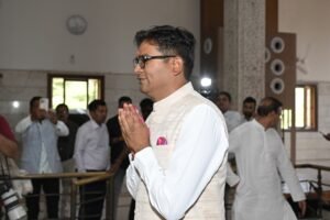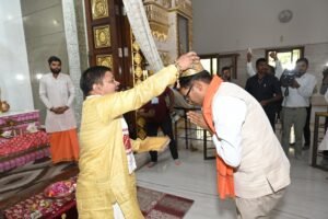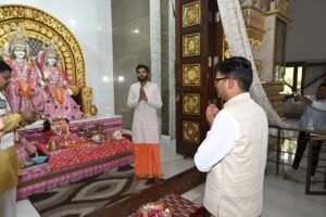 बजट प्रस्तुत करने के पूर्व वित्त मंत्री ओपी चौधरी पहुंचे श्रीराम मंदिर, की पूजा-अर्चना