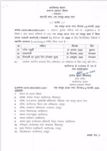 रायपुर. छत्तीसगढ़ सरकार ने नवा रायपुर अटल नगर और रायपुर शहर के सभी सरकारी कार्यालयों और संस्थाओं के लिए स्थानीय अवकाश की घोषणा की है. सामान्य प्रशासन विभाग मंत्रालय ने आदेश पत्र जारी कर छुट्टियों की घोषणा की है.
